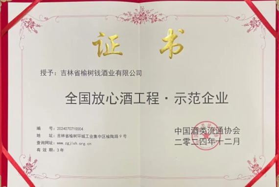 匠心鑄就品質典范|榆樹錢酒業再度蟬聯“放心酒工程示范企業”殊榮